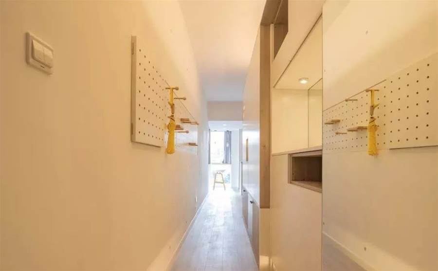 進門一個長長的的走廊和整體收納柜,不再會一眼望穿全部,同時保證了一定的隱私性。