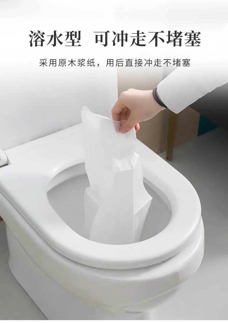先將一次性馬桶墊套在馬桶坐圈上,如廁以后就可以直接扔掉,